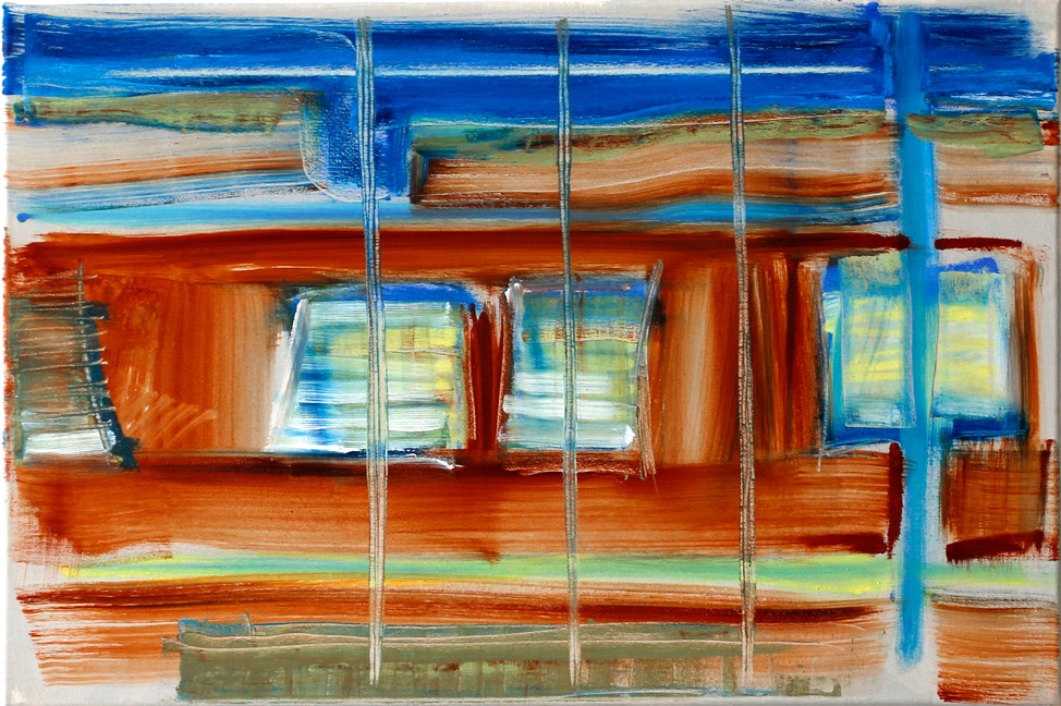 Spiegelung (Obergeschoss/Izeeh), ca. 20 x 40 cm, Öl auf Baumwolle