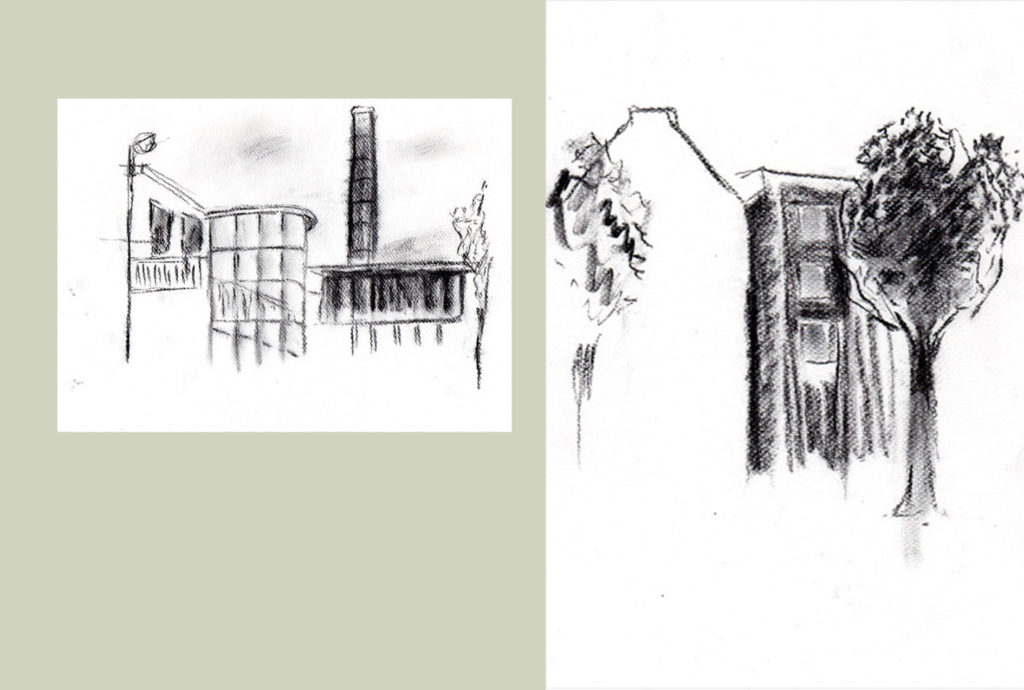 2 Kohleskizzen (Hof bei Lindgens), 21 x 29 cm