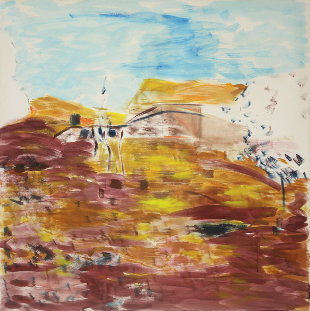 Häuser (verlassen), 140 x 130 cm, Acryl auf Baumwolle